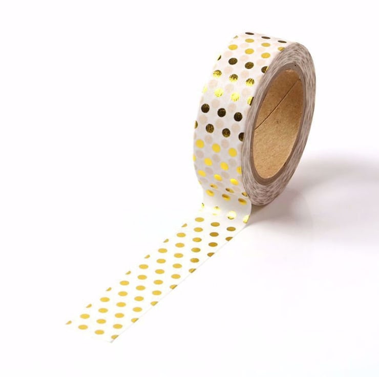 White and Gold Foil Polka Dots Decorative Washi Tape 15mm x 10m