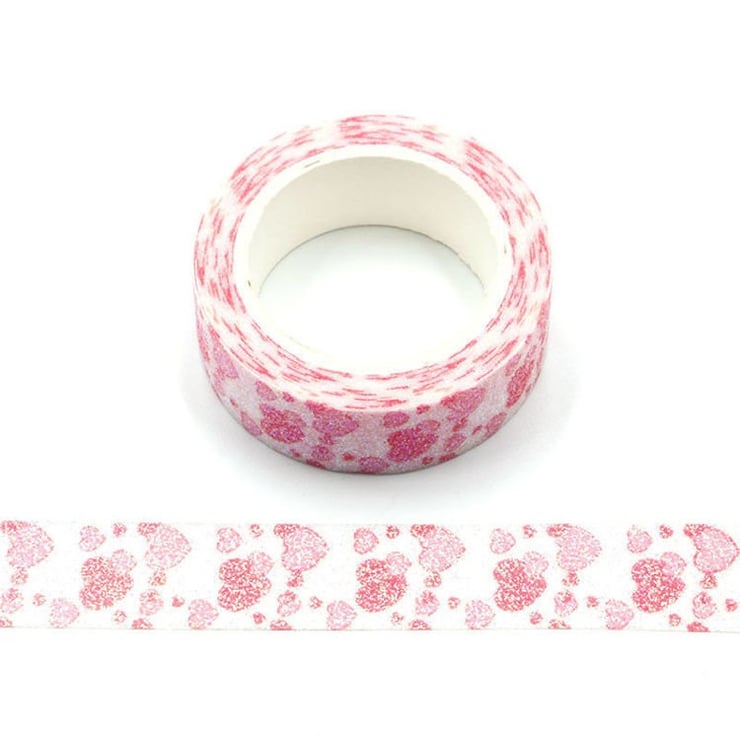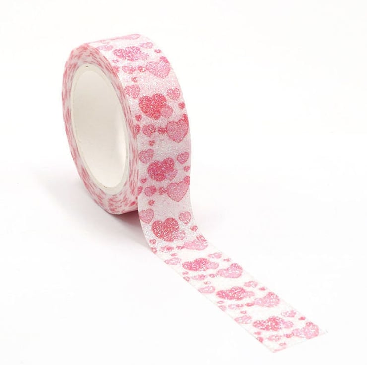 Sparkly Valantines Red and Pink Hearts Glitter Washi Tape Masking Self Adhesive Trim 15mm x 3 Meters