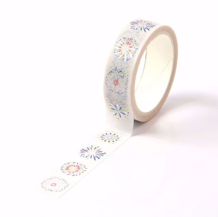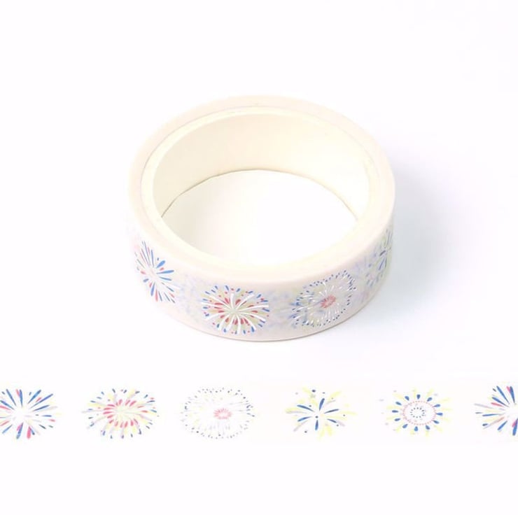 White, Blue and Silver Firework Foil Decorative Washi Tape 15mm Crafts Eco Friendly