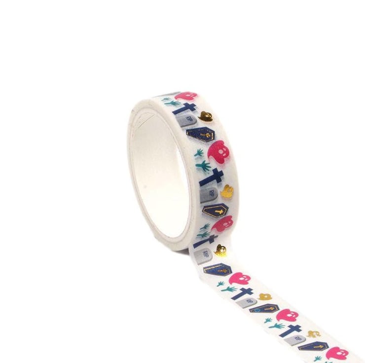This Colourful washi tape with vampire grave theme is perfect for Halloween scrapbooking, bullet journalling. Gold foiling Quality acid free washi tape.
