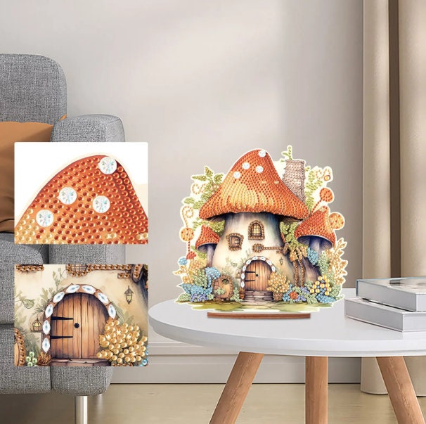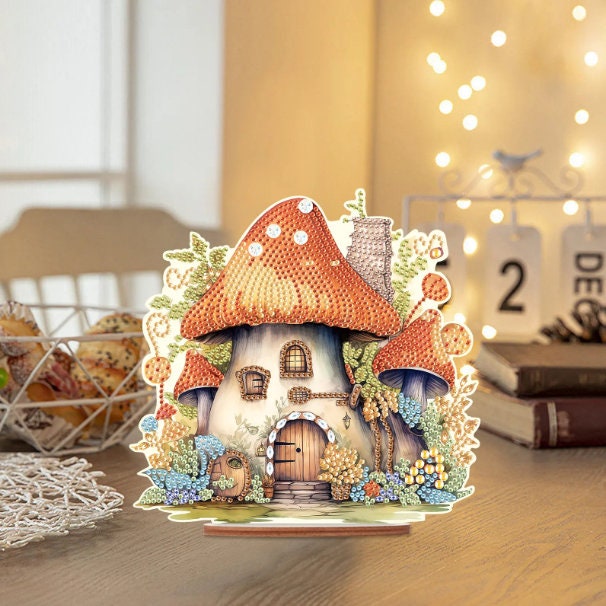 5D DIY Fantasy Mushroom House Diamond Art Kit Crystal Embroidery Rhinestone Acrylic Table Top Decoration Approx. 20cm x 20cm