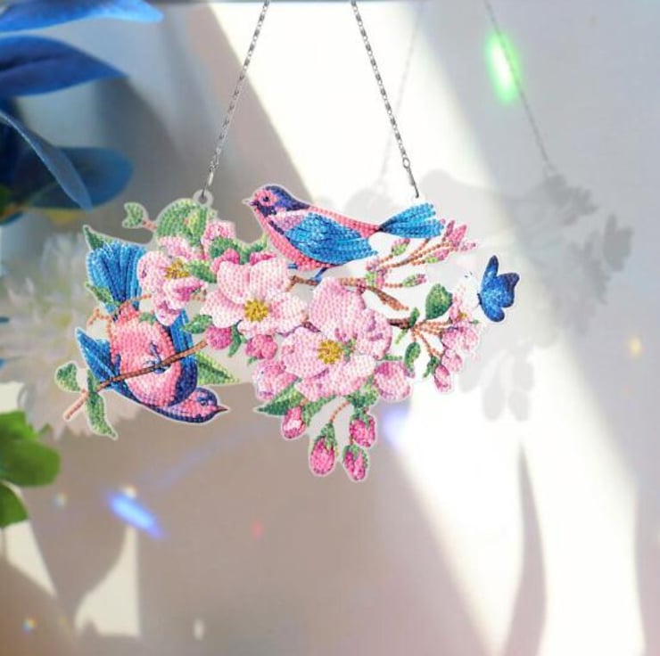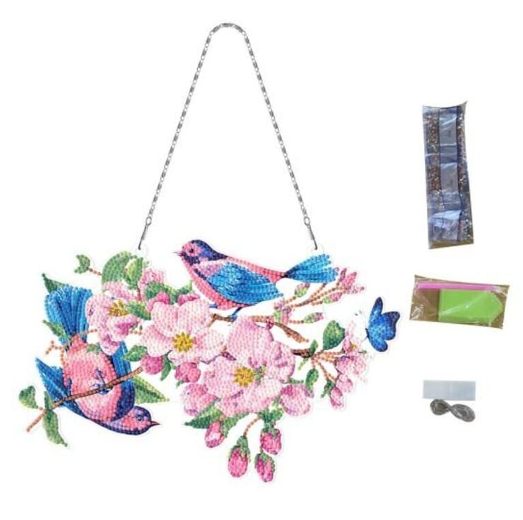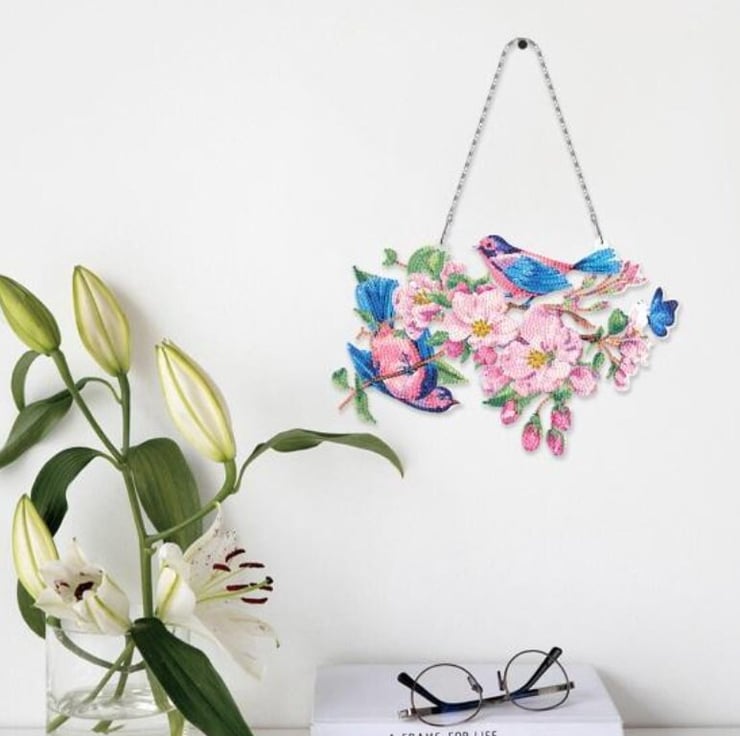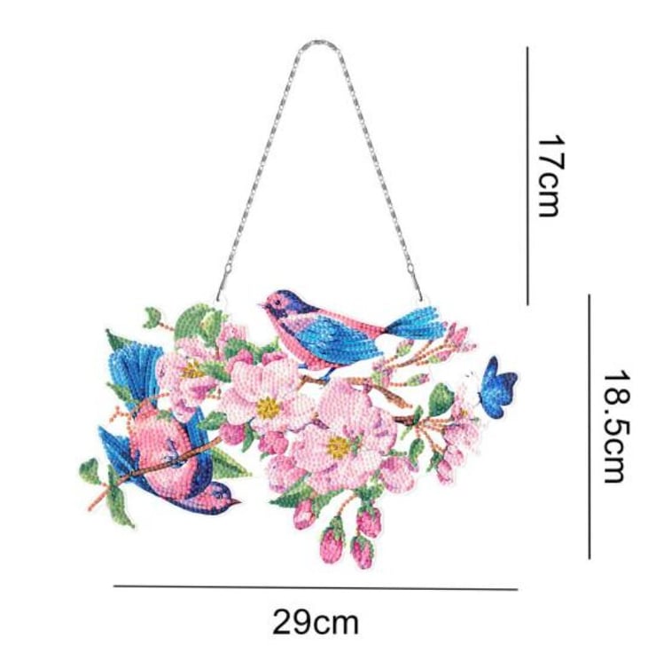 5D DIY Floral Blue Birds Hanging Diamond Art Kit Crystal Embroidery Rhinestone Approx 29cm x 18.5cm Acrylic Decoration