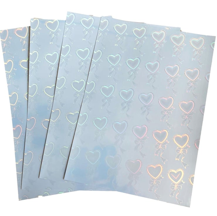10 Sheets Printable Self Adhesive Heart with Bow Transparent Holographic Vinyl Overlay Sheets Laminate Stickers