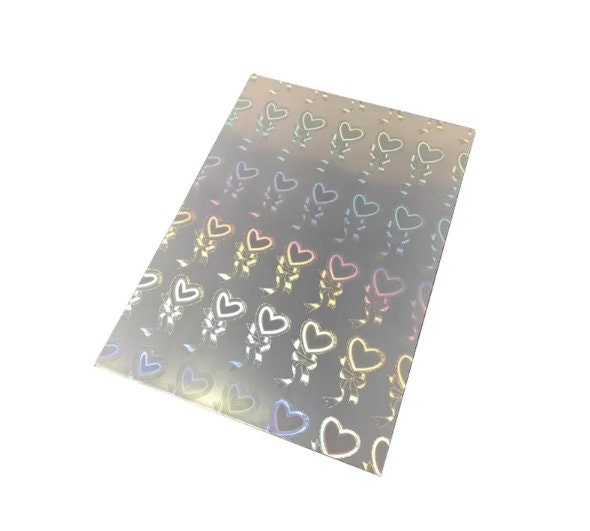 Beautiful Transparent Holographic Self-Adhesive Vinyl Overlay in holographic bowed hearts