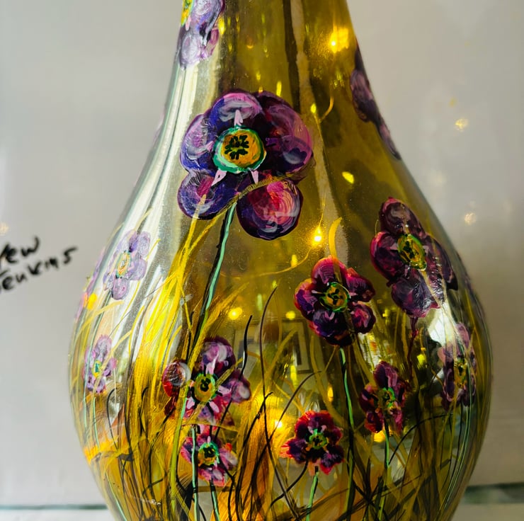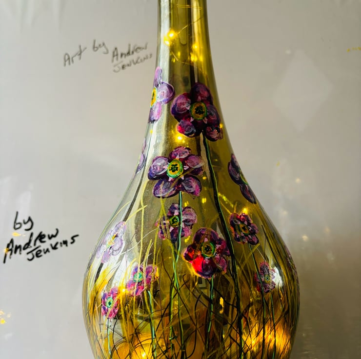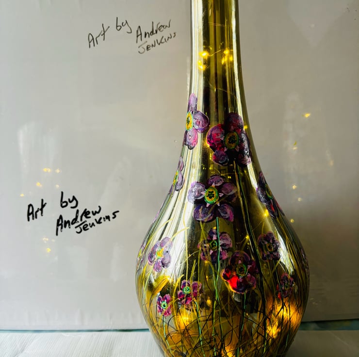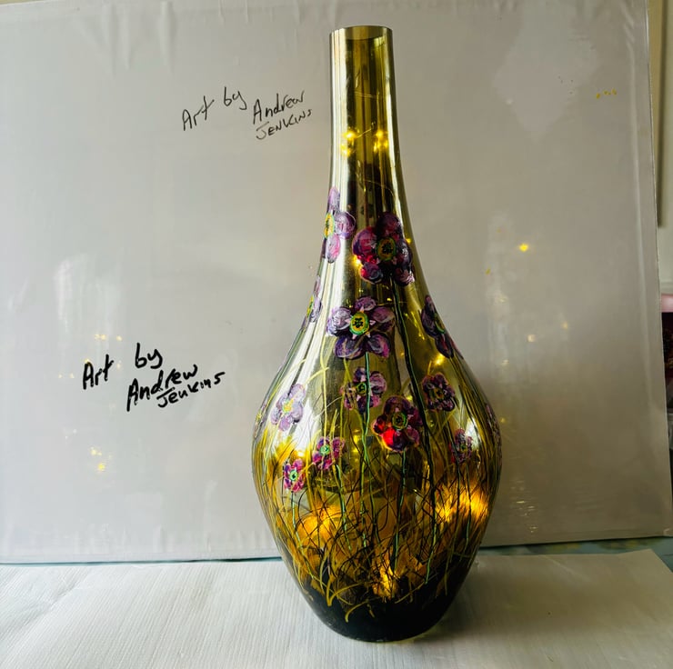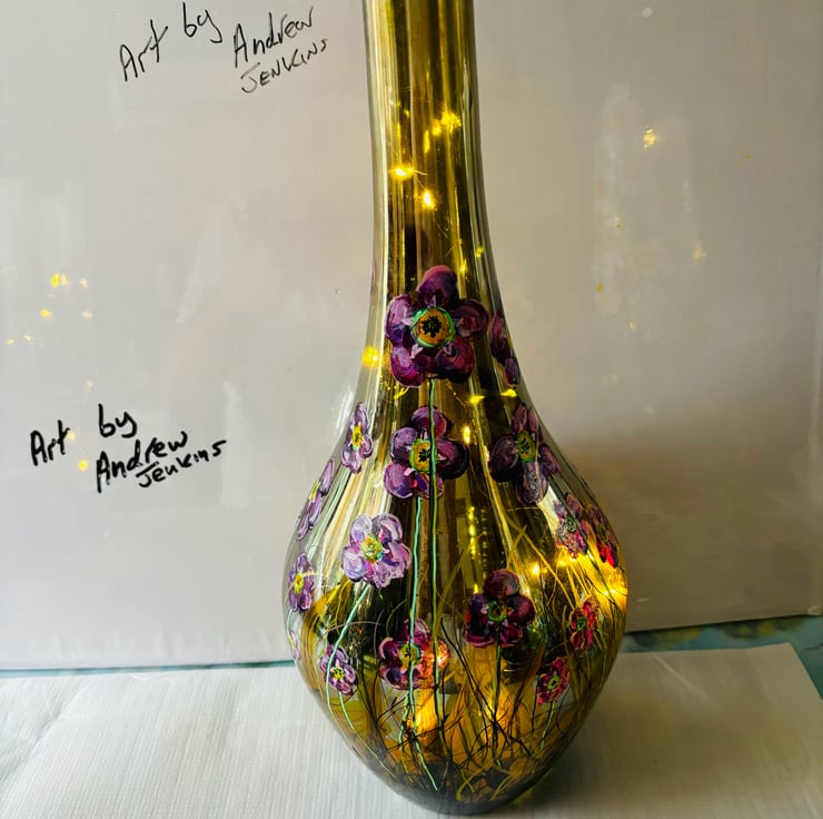 A hand painted and fired glass vase by Andrew Jenkins
