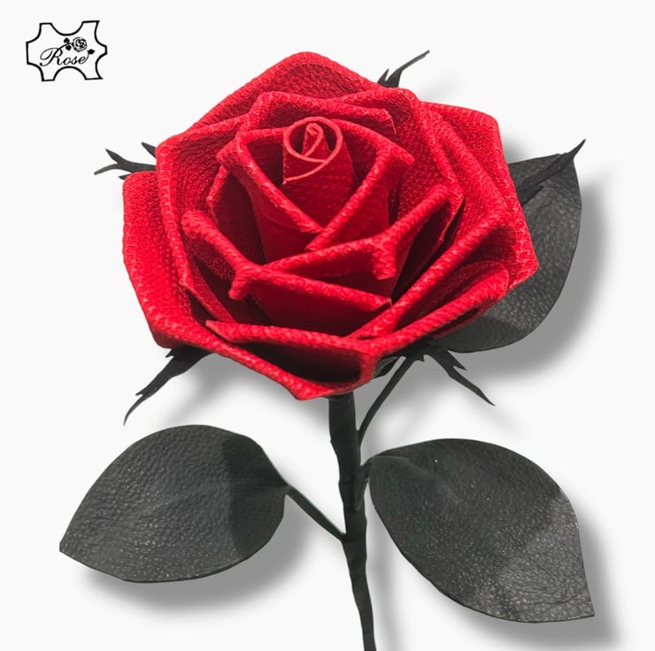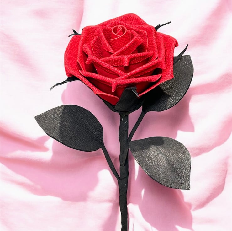 ‘Evermore’ - Handmade long stem red leather rose with black leather leaves and stem. Crafted to celebrate eternal love.
