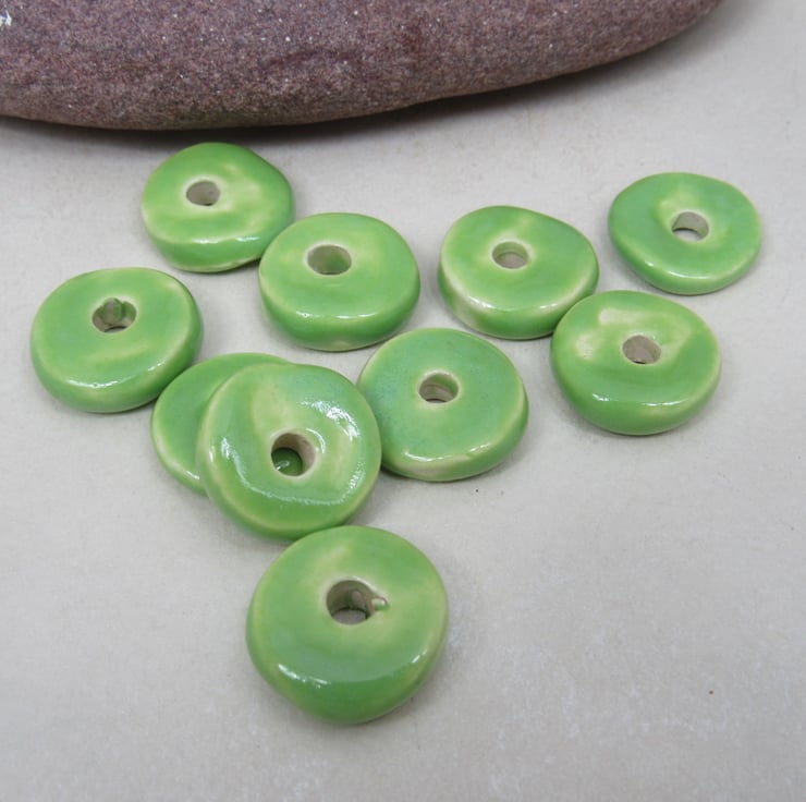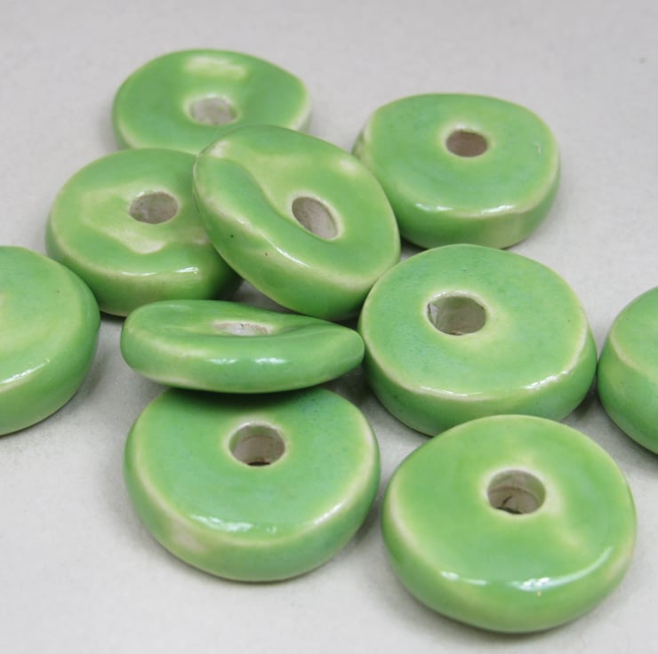10 chunky donut beads in white stoneware