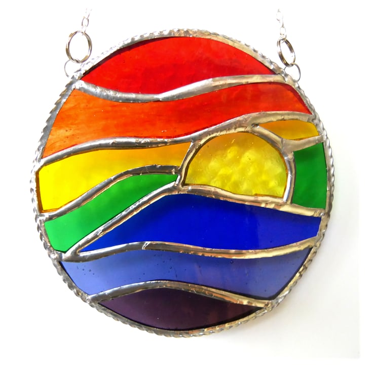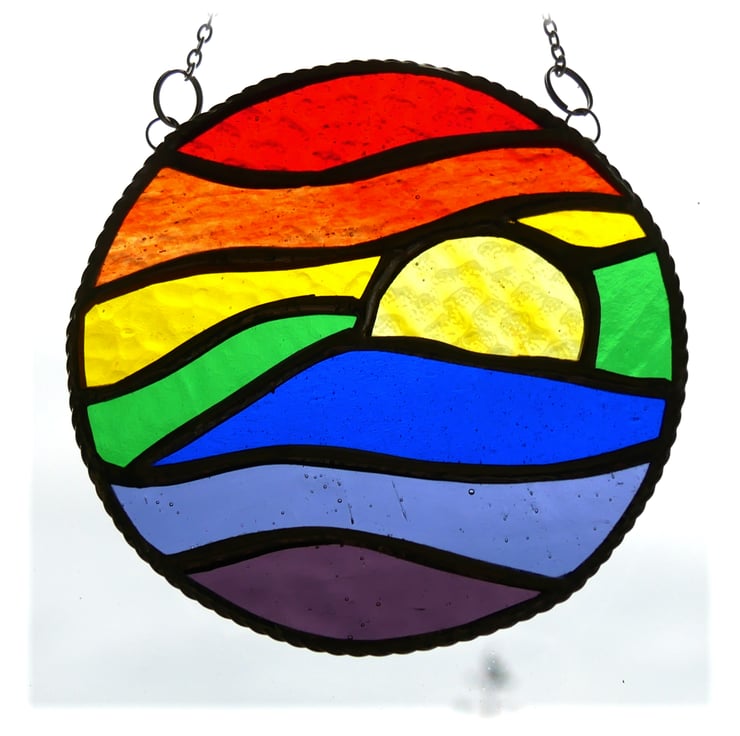 It is a 'picture' of a rainbow and a sun and waves all combined together into a suncatcher ring. Wonderfully bright and cheerful and all ready to celebrate the spring and take us forward into the summer..