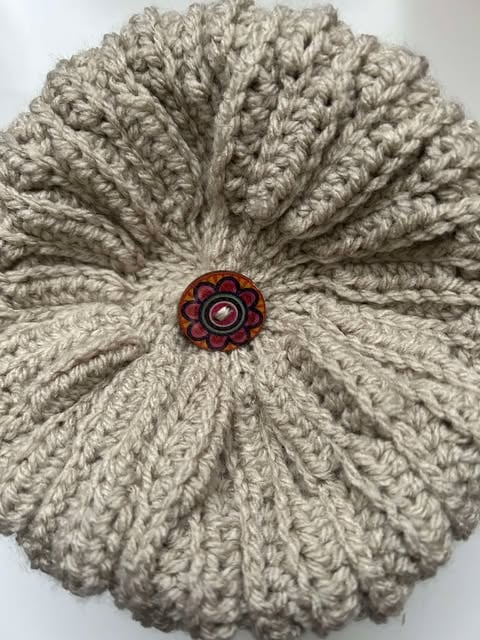 Handmade crocheted hat, hard wearing. Stretchable due to honeycomb crocheted pattern and yarn.