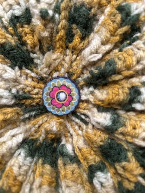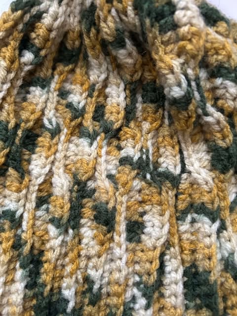 Handmade crocheted hat, hard wearing. Stretchable due to honeycomb crocheted pattern and yarn.