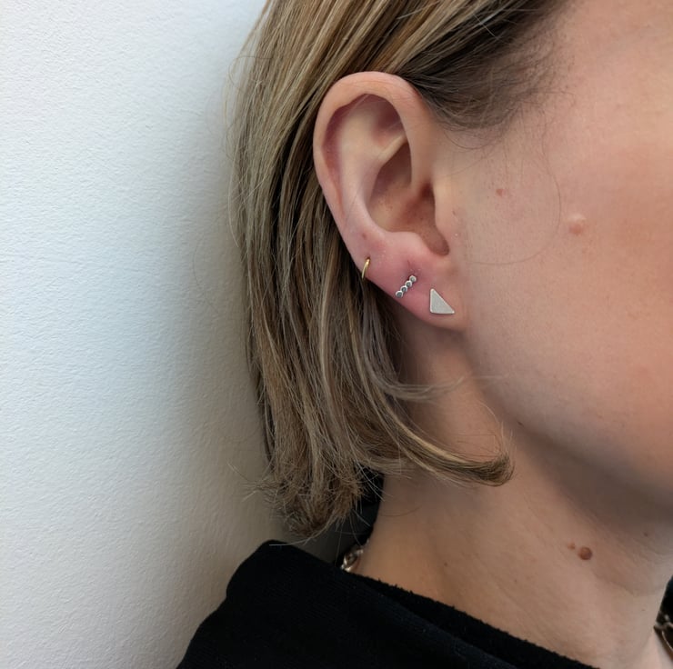 Little sterling silver dotted bar studs. A perfect everyday pair, and great for stacking if you have multiple piercings