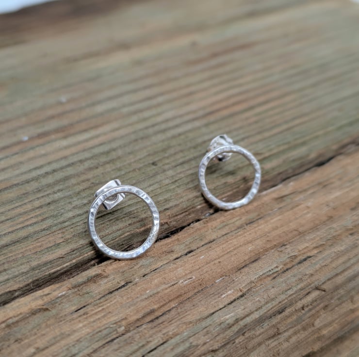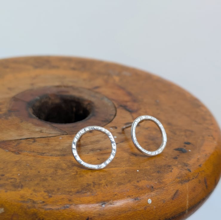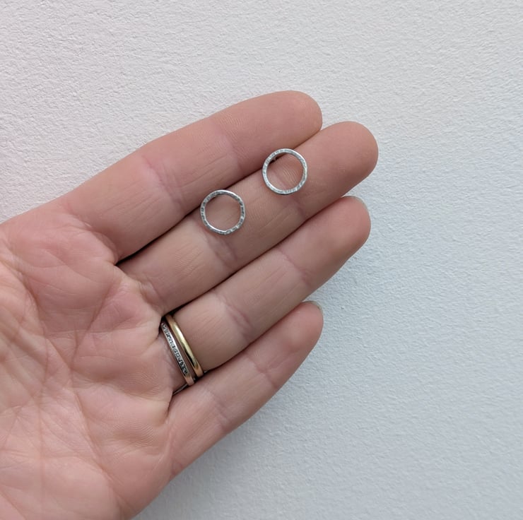 Pretty little studs perfect for everyday wear. Measuring approx 1.1cm diameter, with a shiny hammered finish.