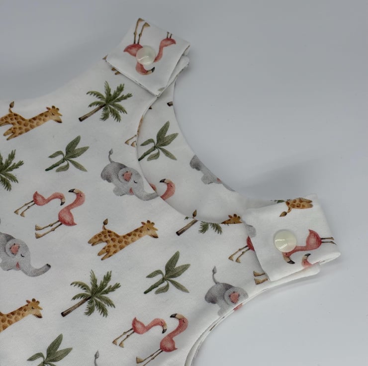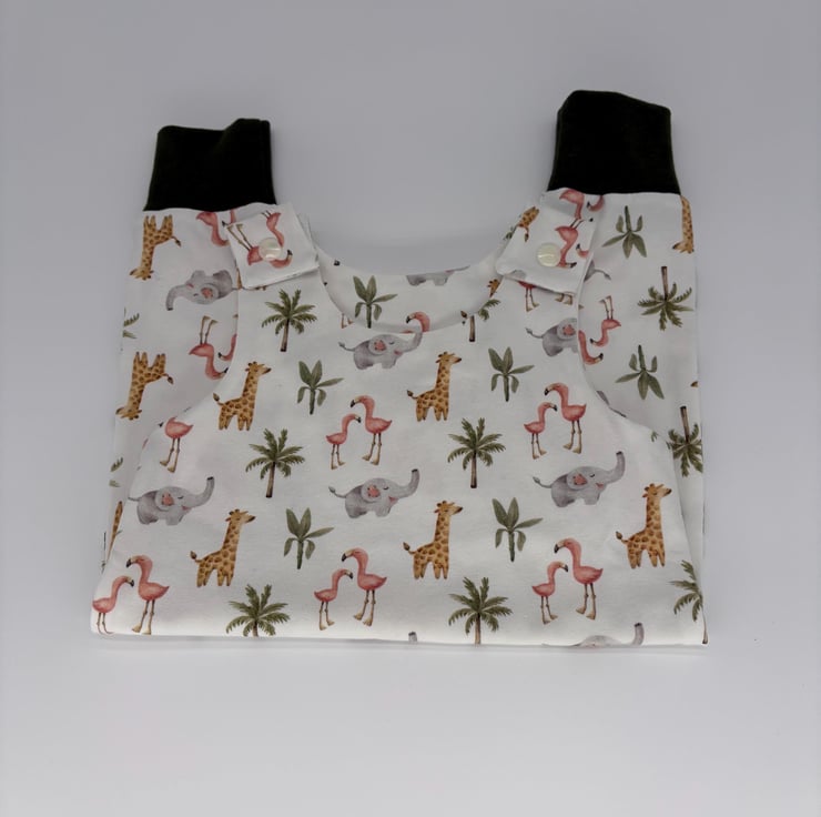 Giraffe Elephant Flamingo handmade dungarees, (0-3 or 3-6 months) Baby romper