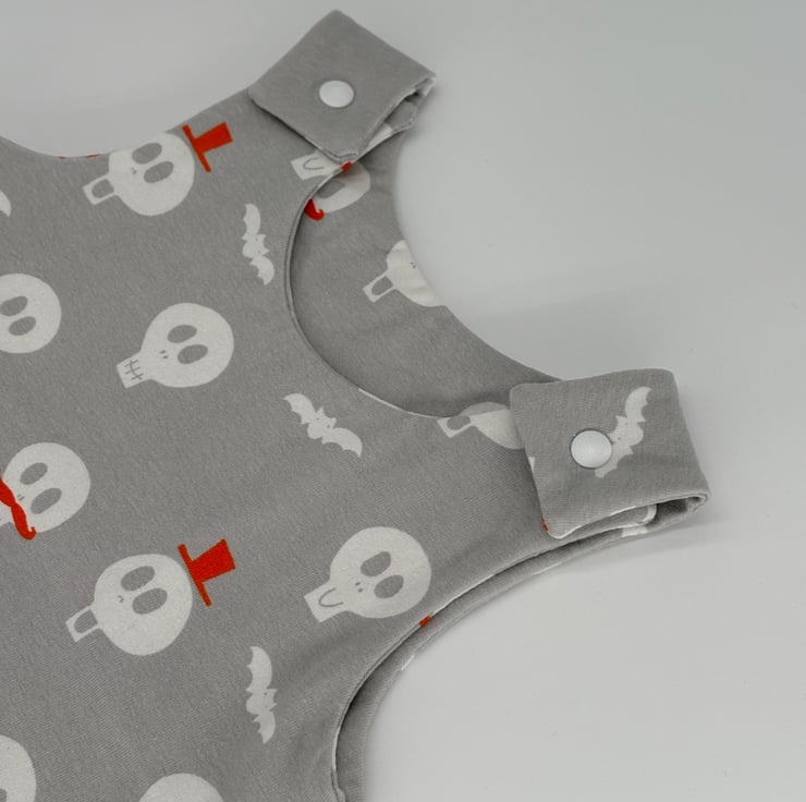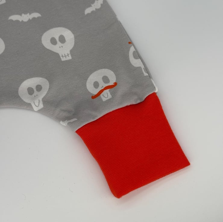 These are handmade with stretchy cotton jersey fabric, cuffs and plastic snaps. They are semi-lined. Cuffs can be worn up or down. Designed to be baggy. Cotton jersey fabric is OEKO-TEX standard, 95% cotton and 5% elastane.
