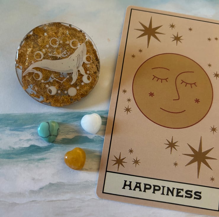This happy Whale shows the formation of the moon and comes beautifully gift wrapped with mini healing crystals and Wisdom fortune card. Perfect for a gift or to remind yourself how far you have come.