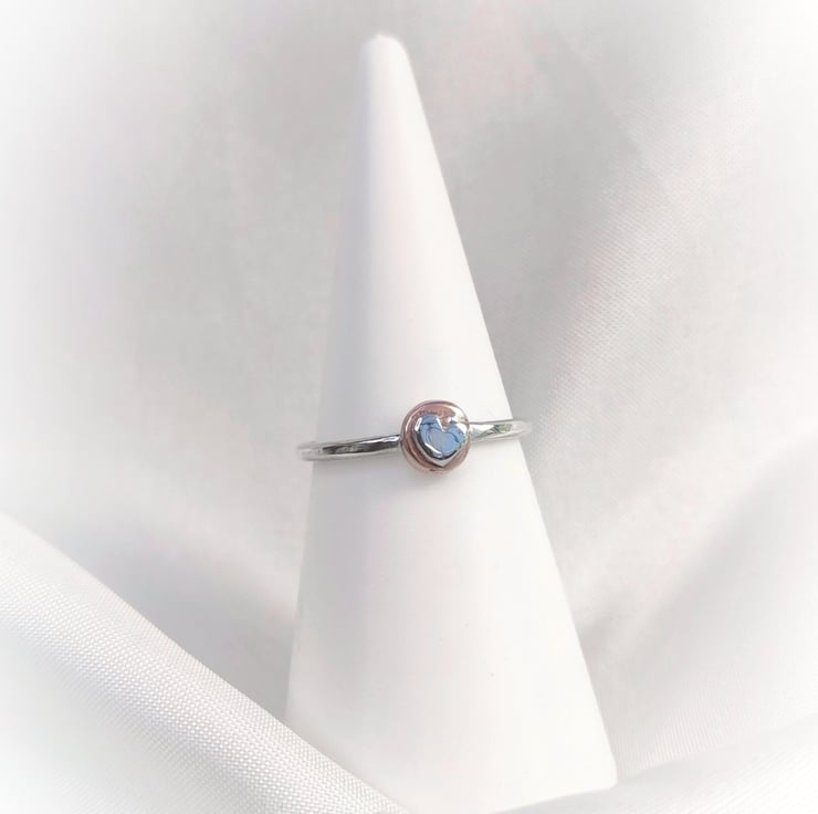 Sterling silver ring with silver heart apliqued on copper disc