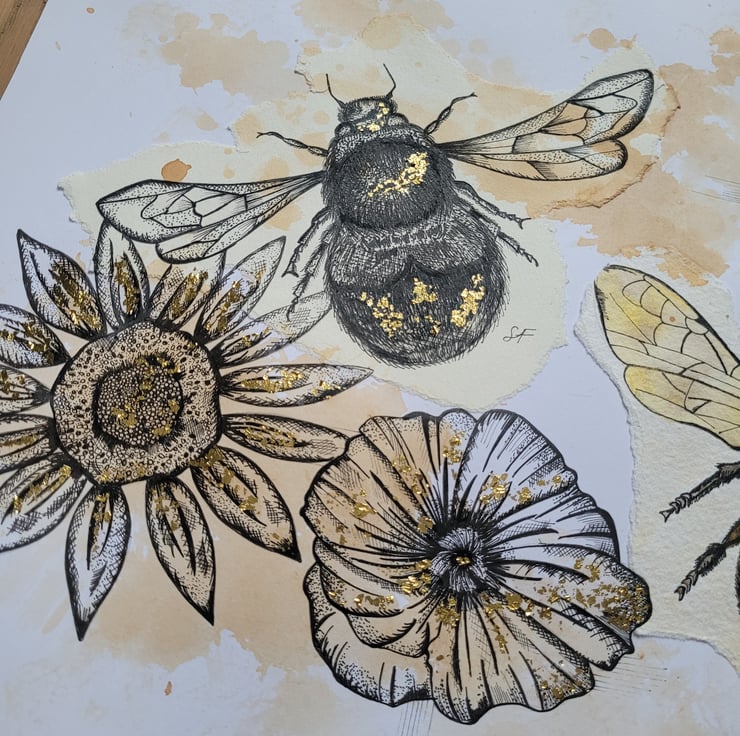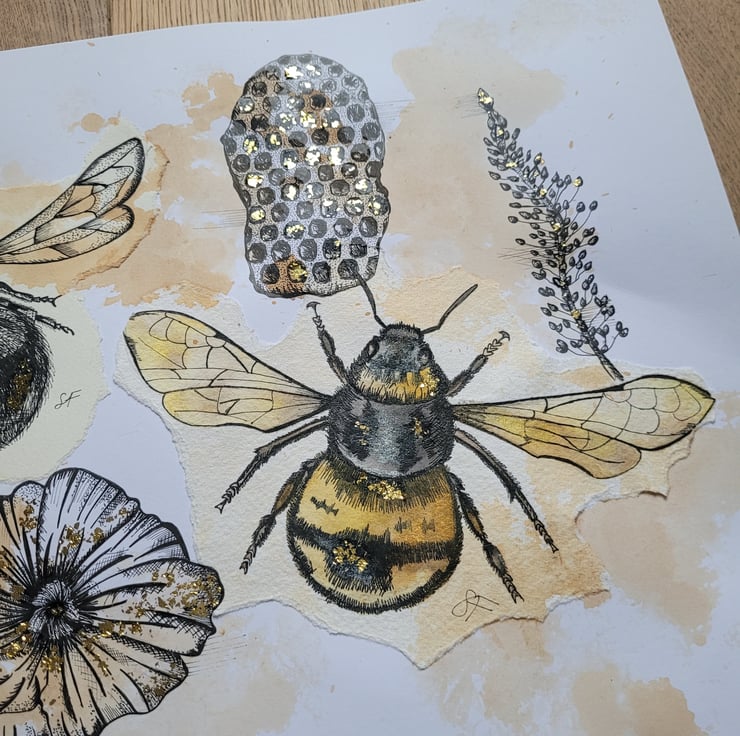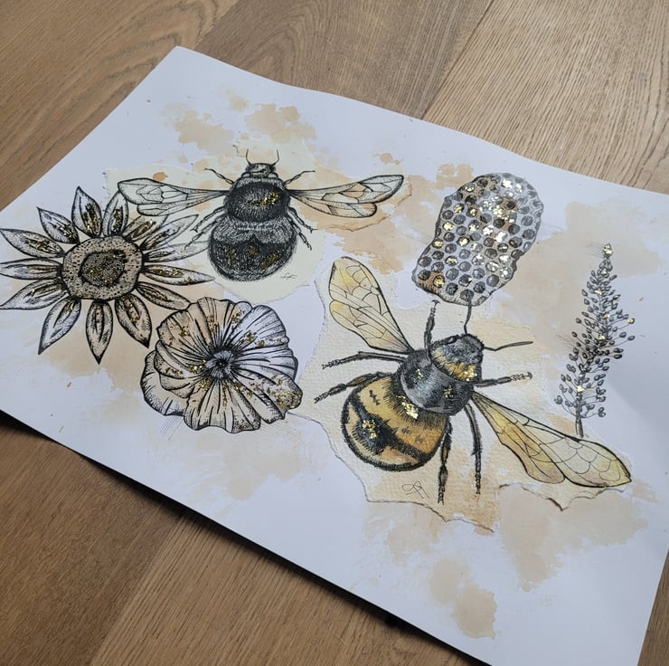 Hand drawn Bee Drawing. Specialising in fine liner drawings to capture the details of nature and landscapes. This piece comes unframed/unmounted and is sent is protective packaging.