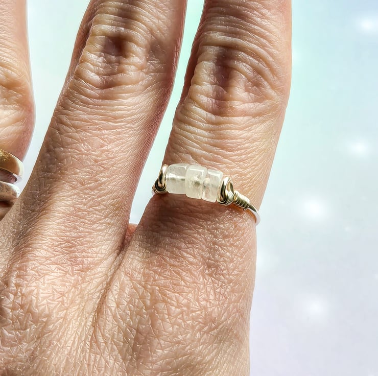 Welcome to my listing for this handmade sterling silver Rainbow Moonstone beaded ring!