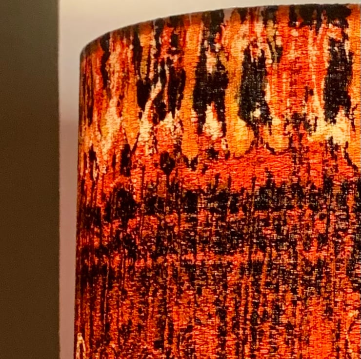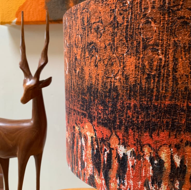 Burnt Orange VIBRATIONS Nicola Wood Heals 60s Vintage Fabric Lampshade option - bold feature fabric for a lampshade in a modern, vintage or retro styled home.