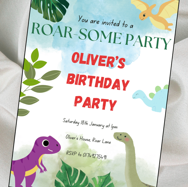 Includes 10x single sided (A6 Size) kids personalised birthday party invites with envelopes included