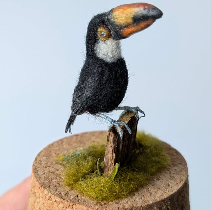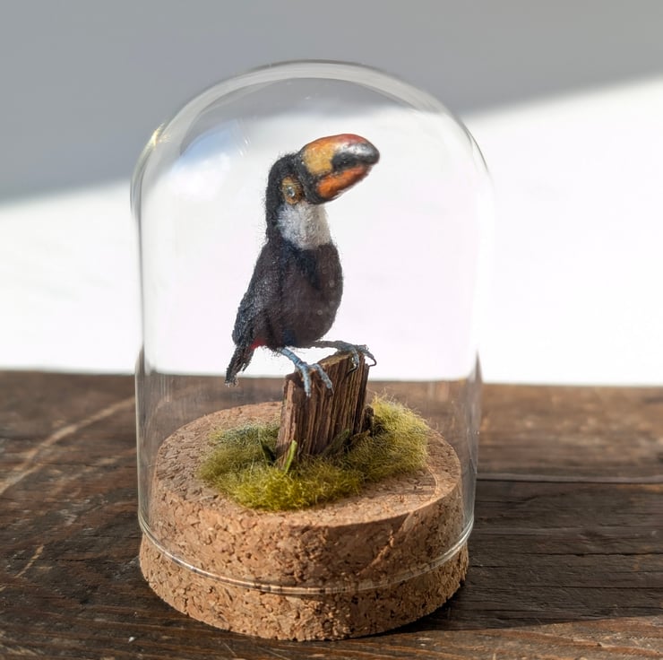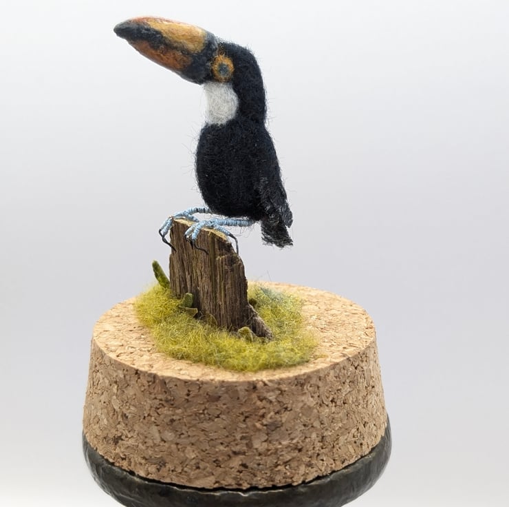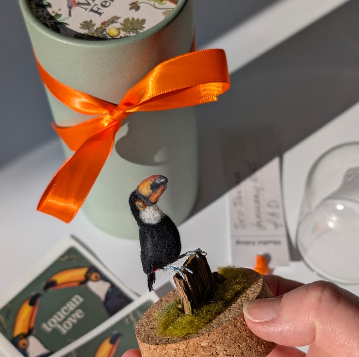 A collection of 5 utterly unique, limited edition tiny wool Toco Toucans in 1:12 scale natural habitat dioramas. A tiny bird perfectly formed to share your love with that special someone, be they bird lover, miniature collector or dollhouse enthusiast.