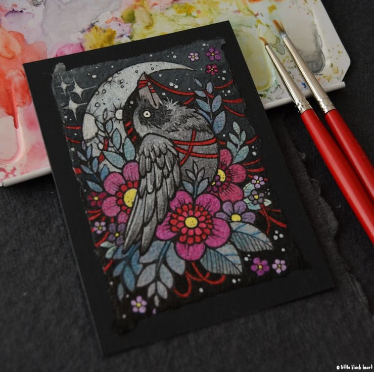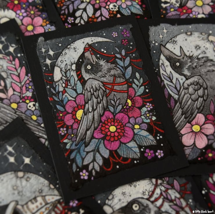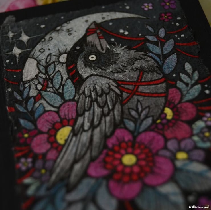 a little crow all tangled in red twine. (a nod to one of my favourite films.)