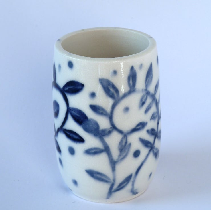 A pretty little porcelain posy vase made by Linda in her pottery in Winchester