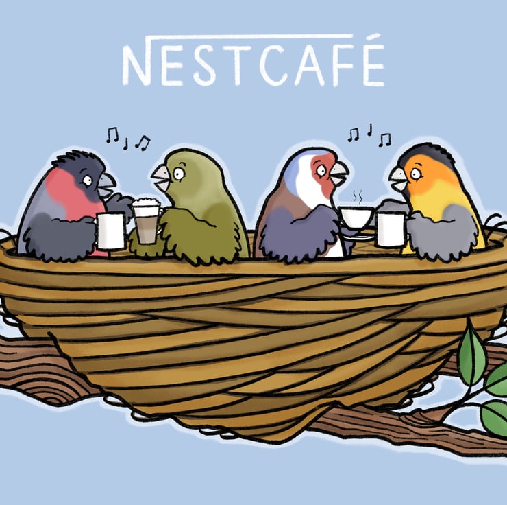 Nestcafe - Funny Coffee Birdwatching Greeting Card A6 - Pun Birthday Card