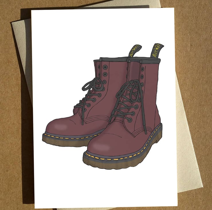 Featuring my original illustration of a pair of cherry red Docs, this greetings card is perfect for a special birthday or any other occasion.