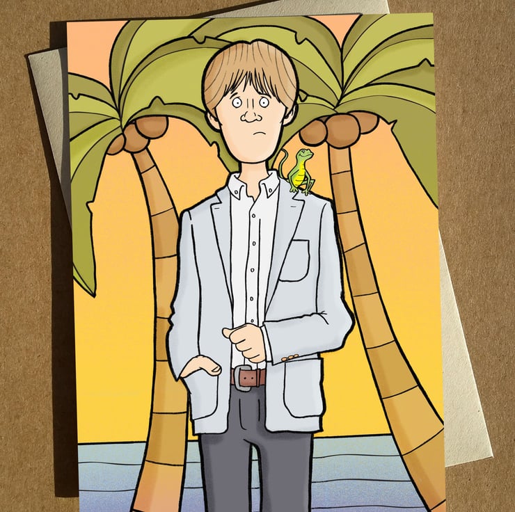 Death in Paradise greeting card featuring my original illustration of previous Detective Inspector - Humphrey Goodman.