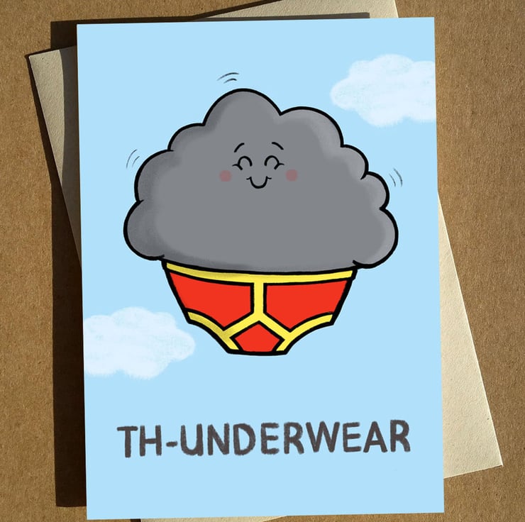 Featuring my original cartoon illustration 'Thunderwear', this pun-tastic greeting card is perfect for a special birthday or any other occasion.