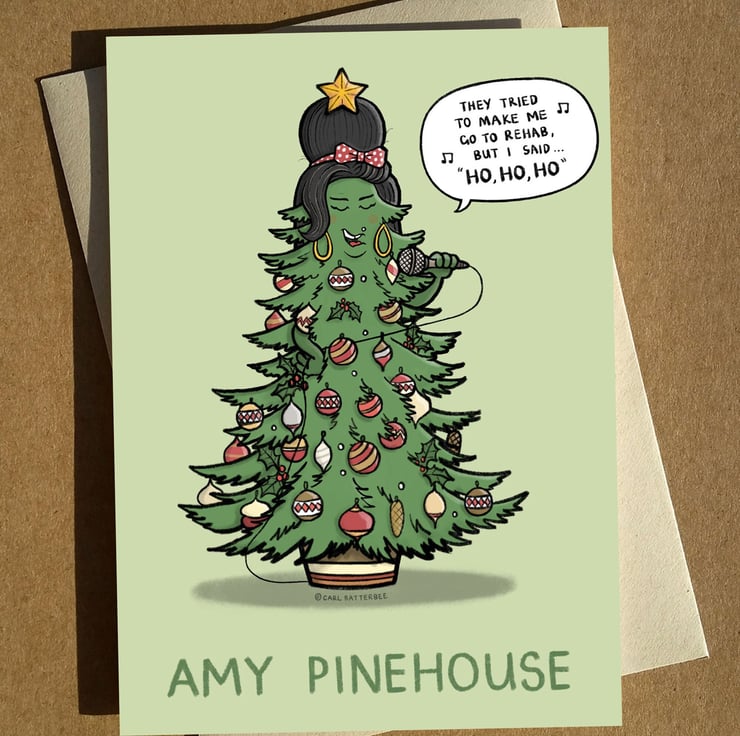 Amy Winehouse Cartoon Pun Christmas Card A6