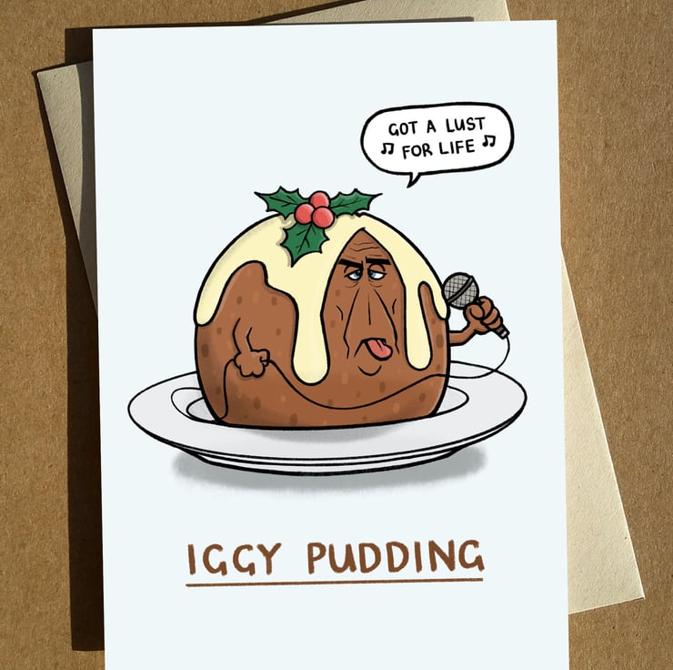Iggy Pop Christmas card featuring my original cartoon illustration.