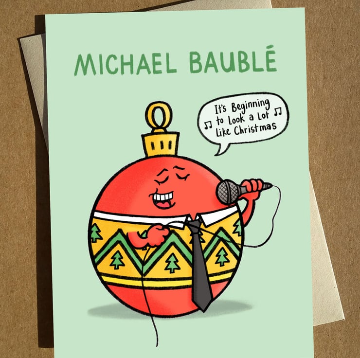 This punny Christmas card features my own original illustration "Michael Baubl " - hand drawn and digitally finished.
