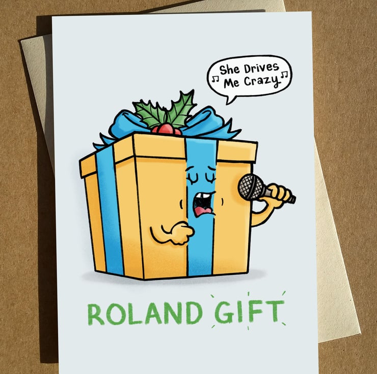 Roland Gift Christmas card featuring my original cartoon illustration.