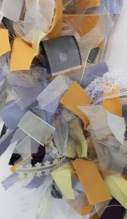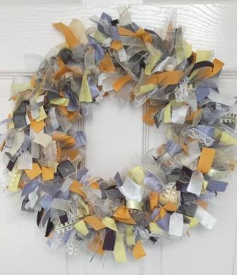 Modern contemporary shades of yellow and grey make this handmade round rag wreath the perfect house warming gift for one you love. Or perhaps keep it for yourself to add something new to your home’s interior.