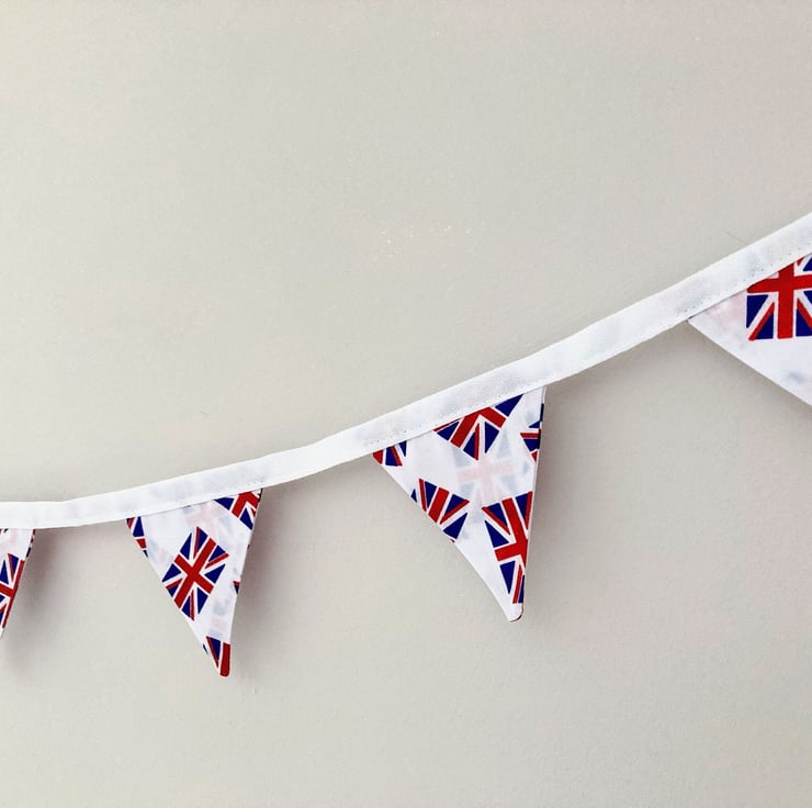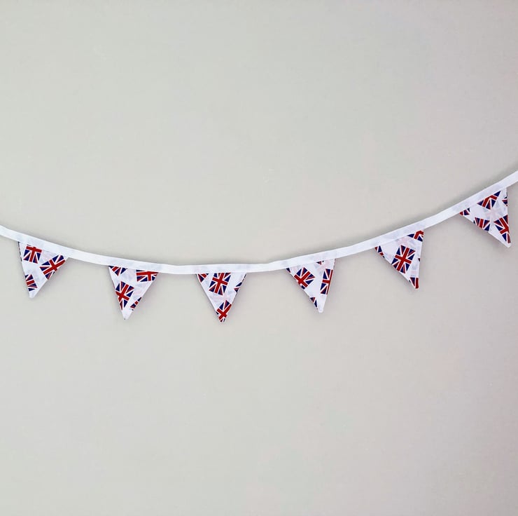 Beautifully handmade mini bunting. It features 8 polycotton flags, sewn onto white cotton tape.