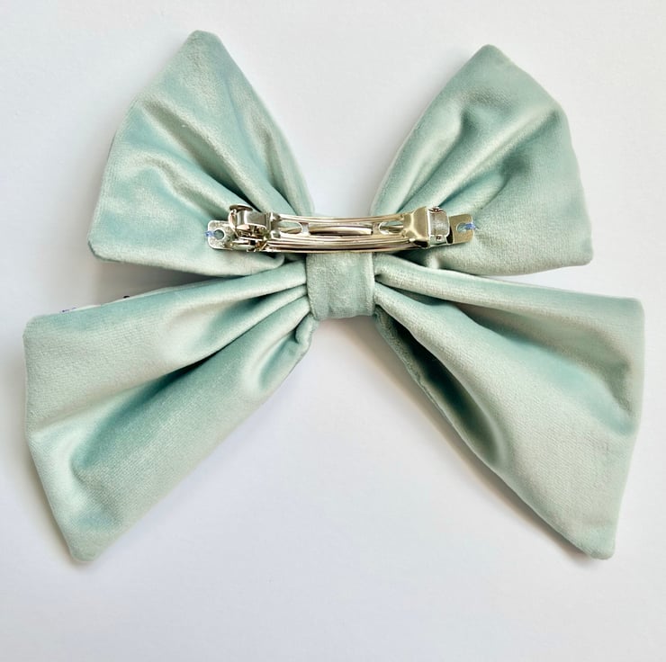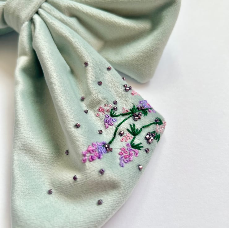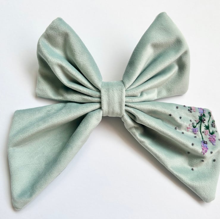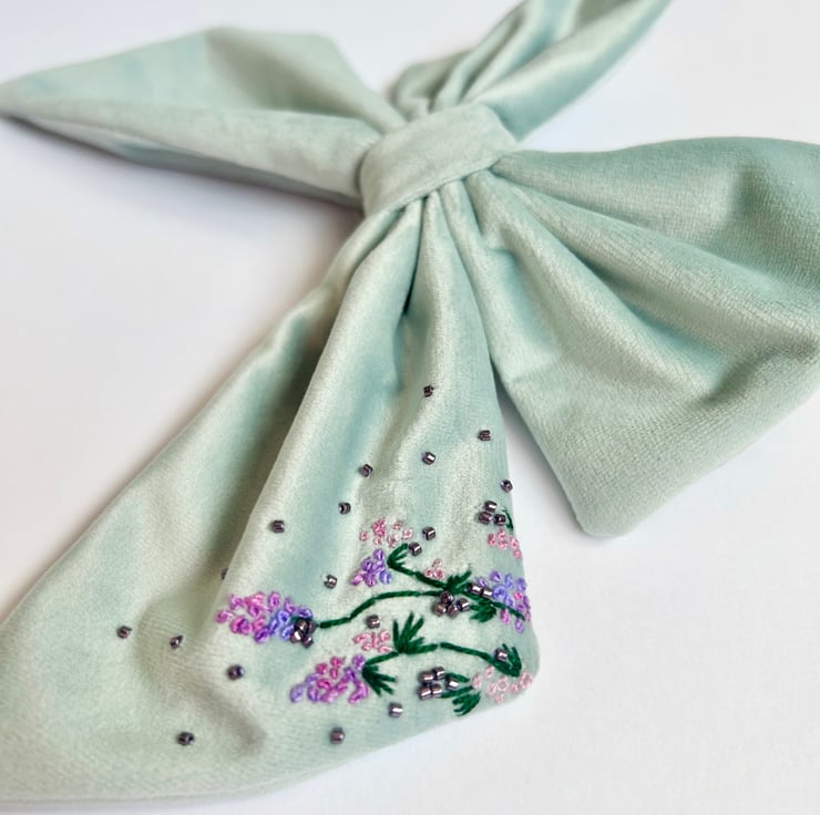 This is apart of the undertheleaves botanical hair clip collection. All bows are hand embroidered, designed and sewn together by me. With each bow being individually made and a one off design.