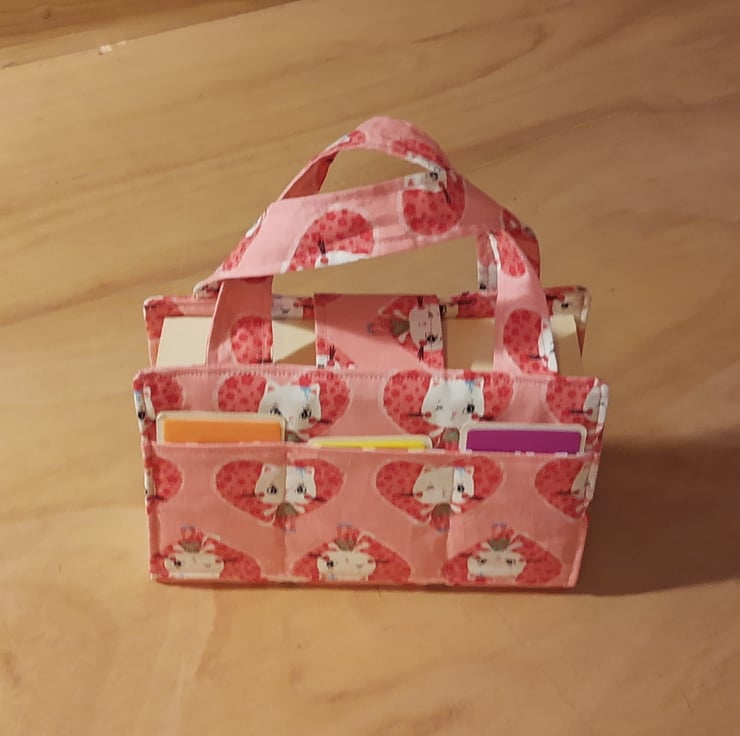 This book bag includes comfortable handles, three convenient pockets perfect to keep your reading/journalling essentials organized, and a snap fastening.