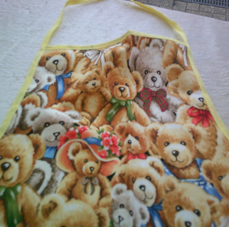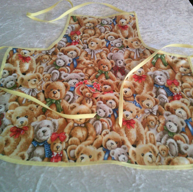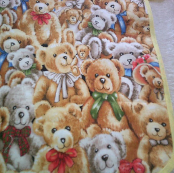 The fabric used has an all over design of Teddy Bears and is edged with contrasting yellow bias binding.