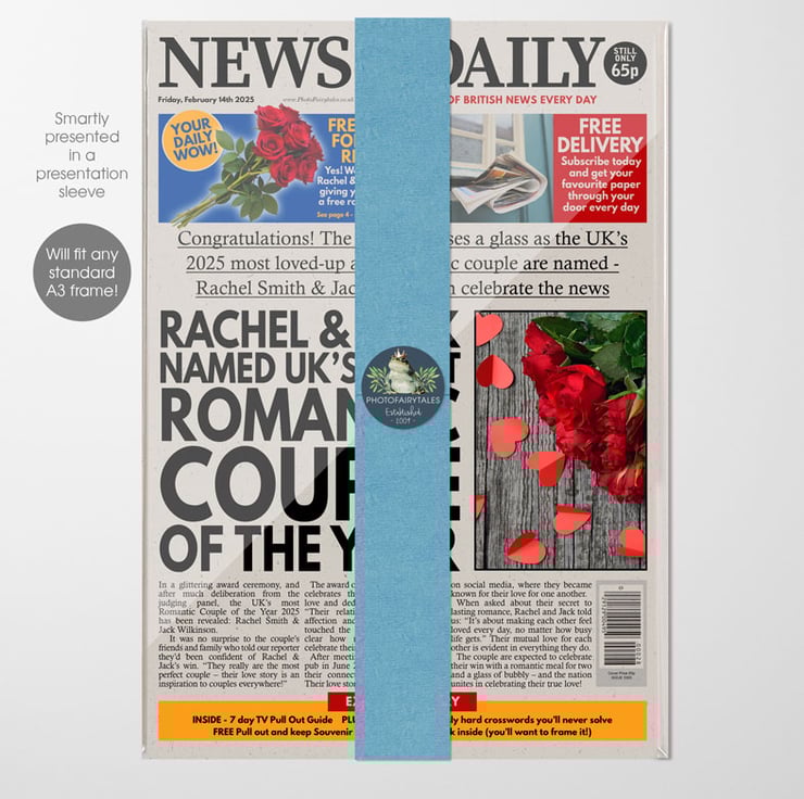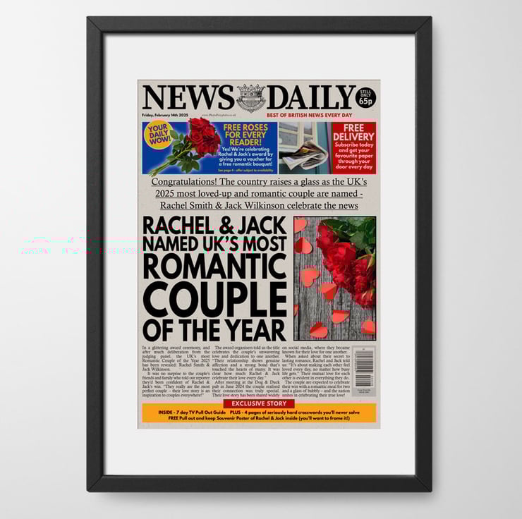 Hit the headlines in your very own personalised Couple of the Year spoof newspaper print!