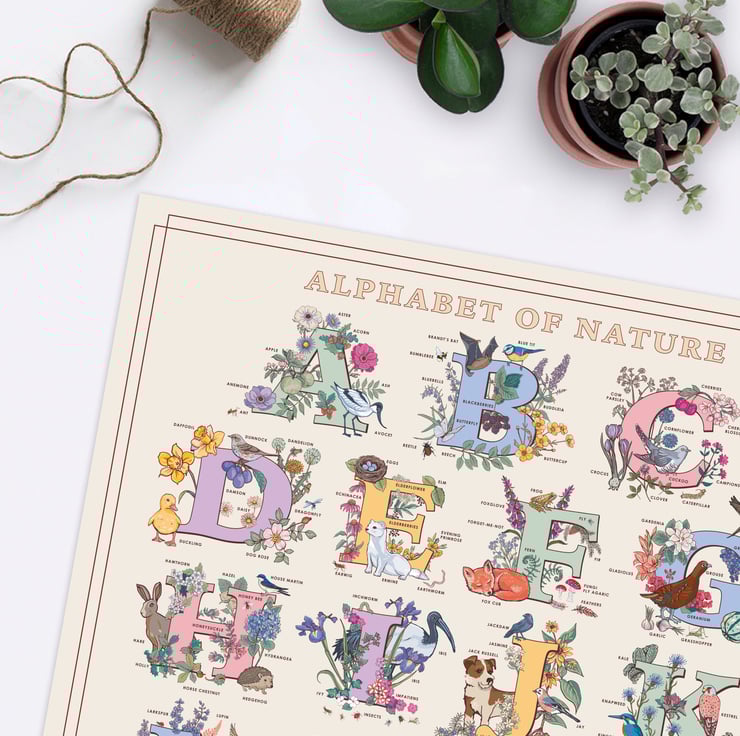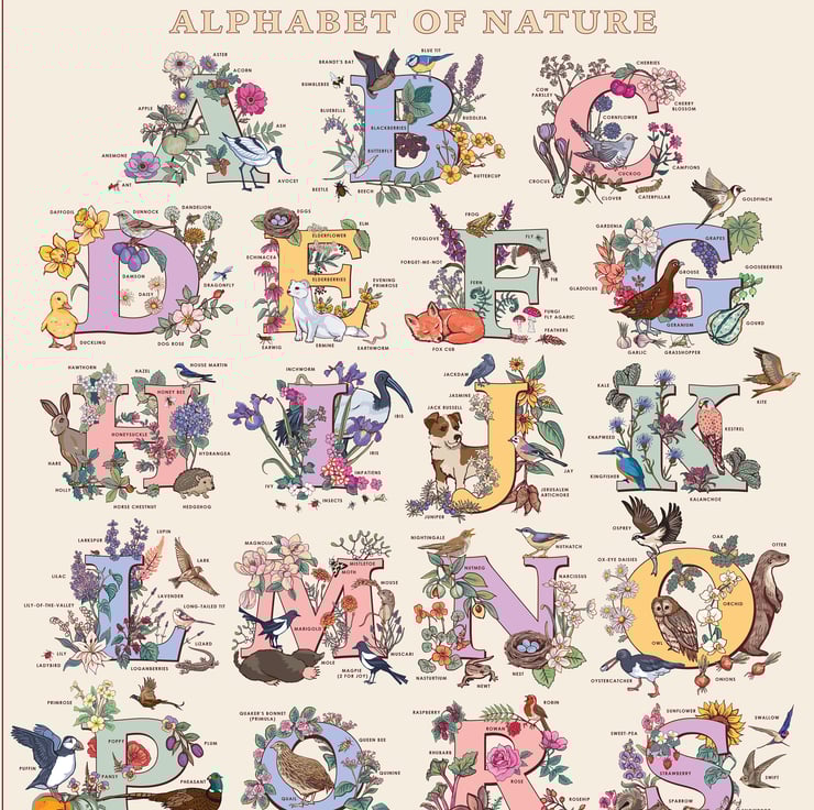A2 sized (594 x420mm) Large Poster of an Alphabet of Nature.