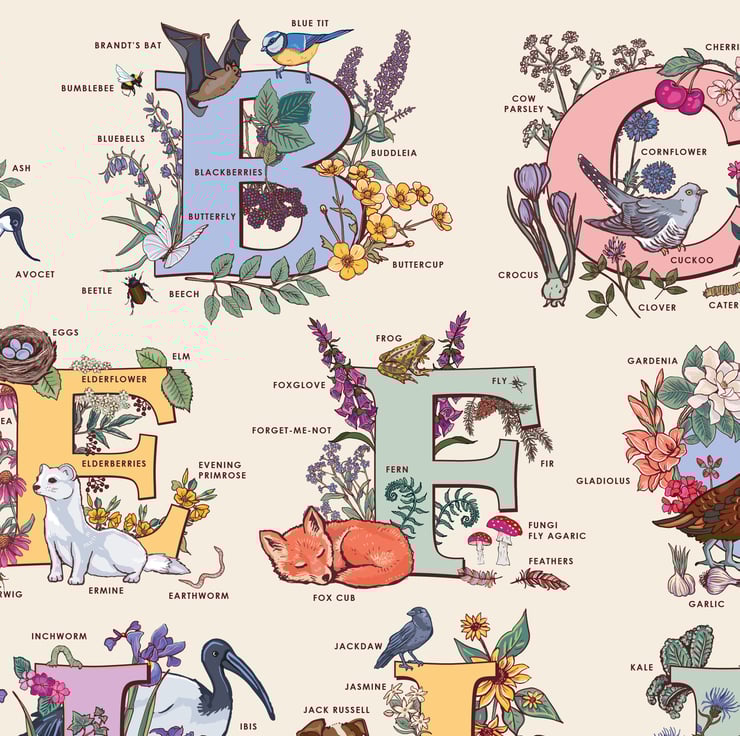 A perfect gift for a new baby or to decorate a child's room or nursery. This poster features lots of species of plants, birds and animals found across Britain, mixing a pretty colour palette with beautiful details to make learning lovely.