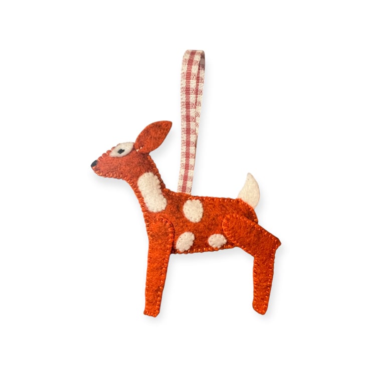 Made from 100% pure wool felt and sewn in two colours of DMC orange cotton thread , this fawn would make a lovely gift for a newborn baby , friend or animal lover.