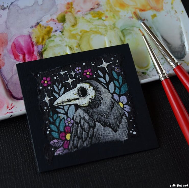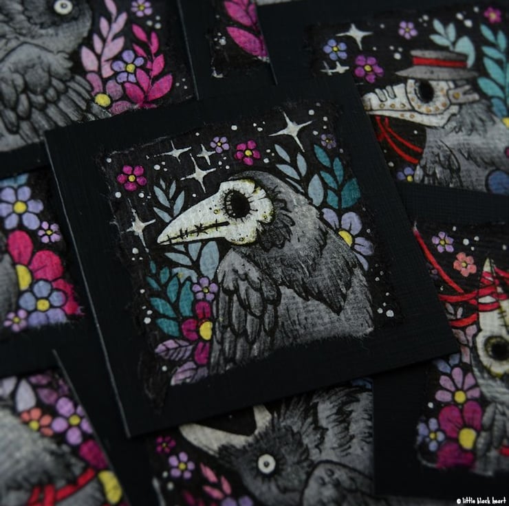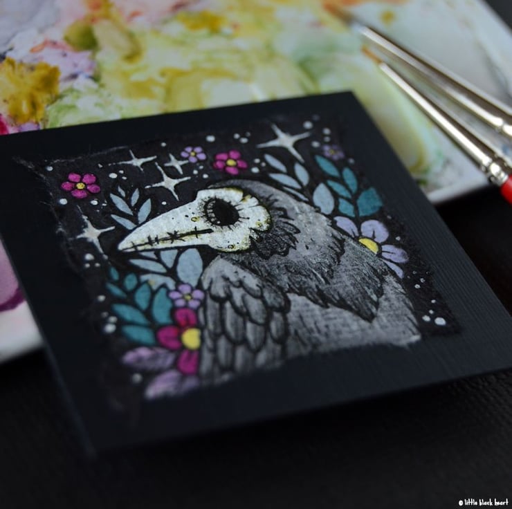 just a tiny mini crow... up to no good, plotting general shenanigans and other crow business.