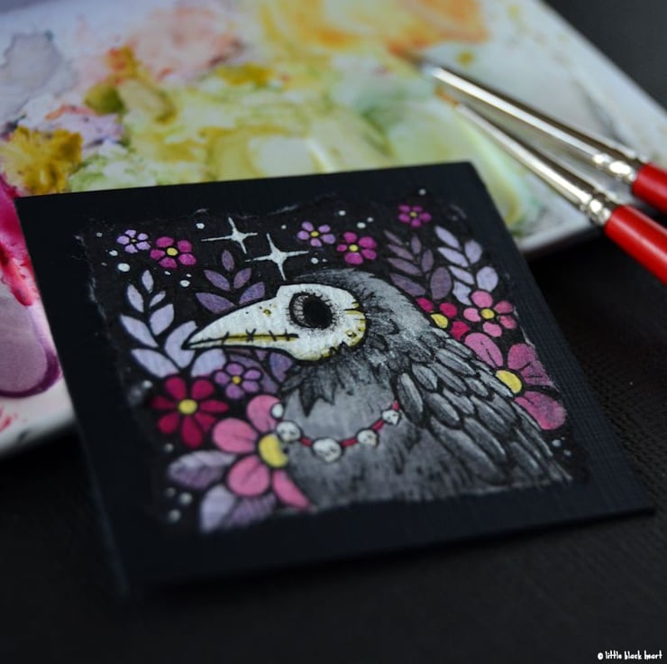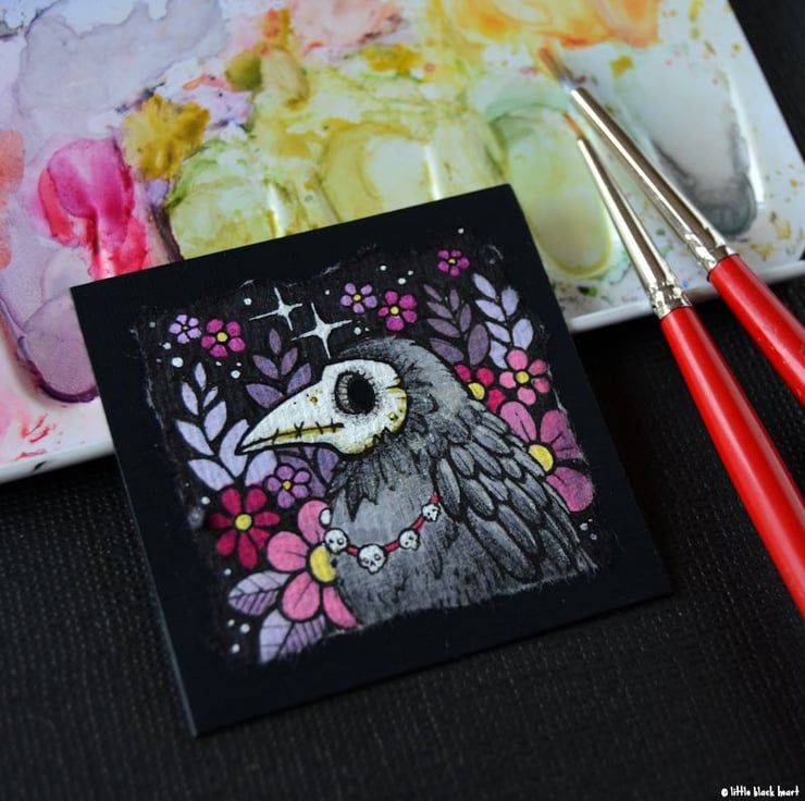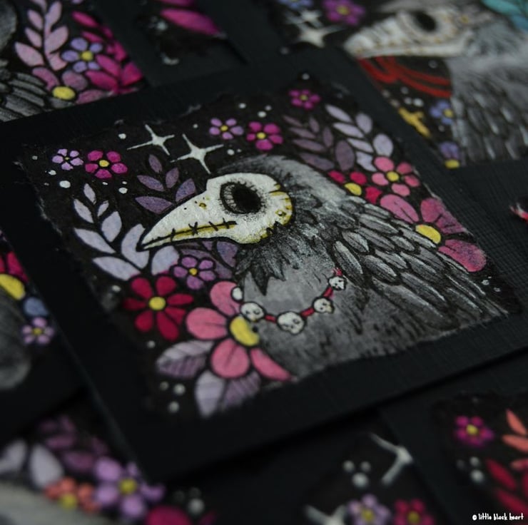 just a tiny mini crow... up to no good, plotting general shenanigans and other crow business.