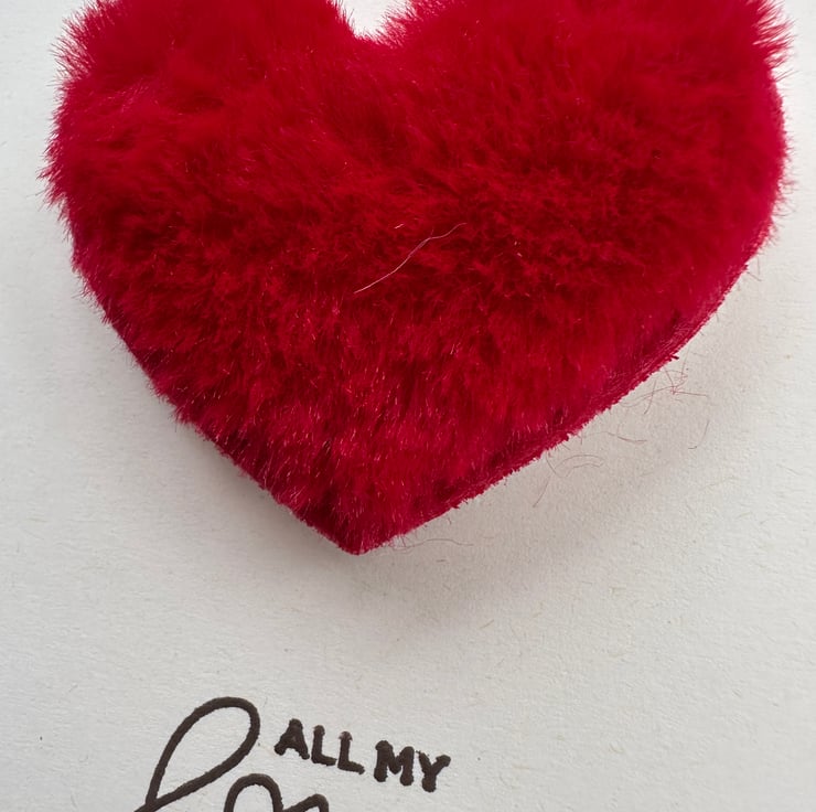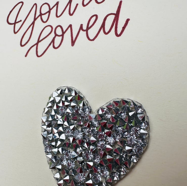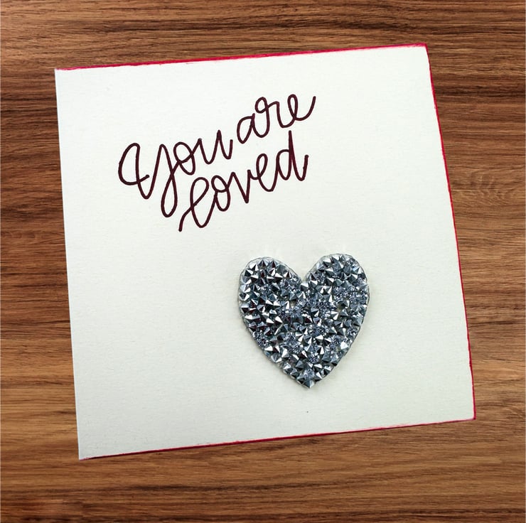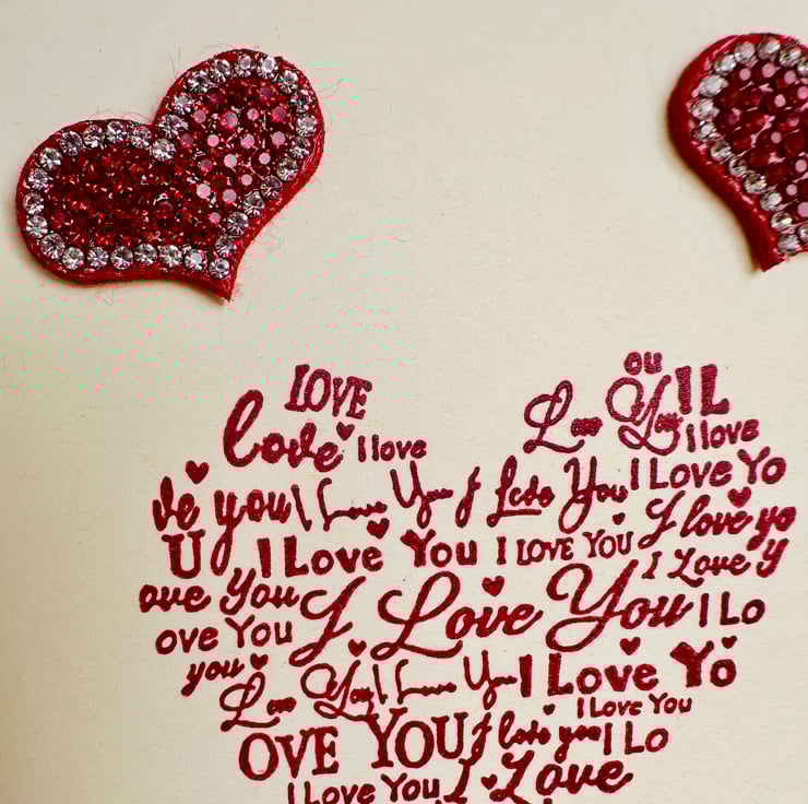 Quality soft cream cards in 4 designs for you to choose, think thick fluffy hearts, shiny silver textured hearts and red and silver diamanté hearts.