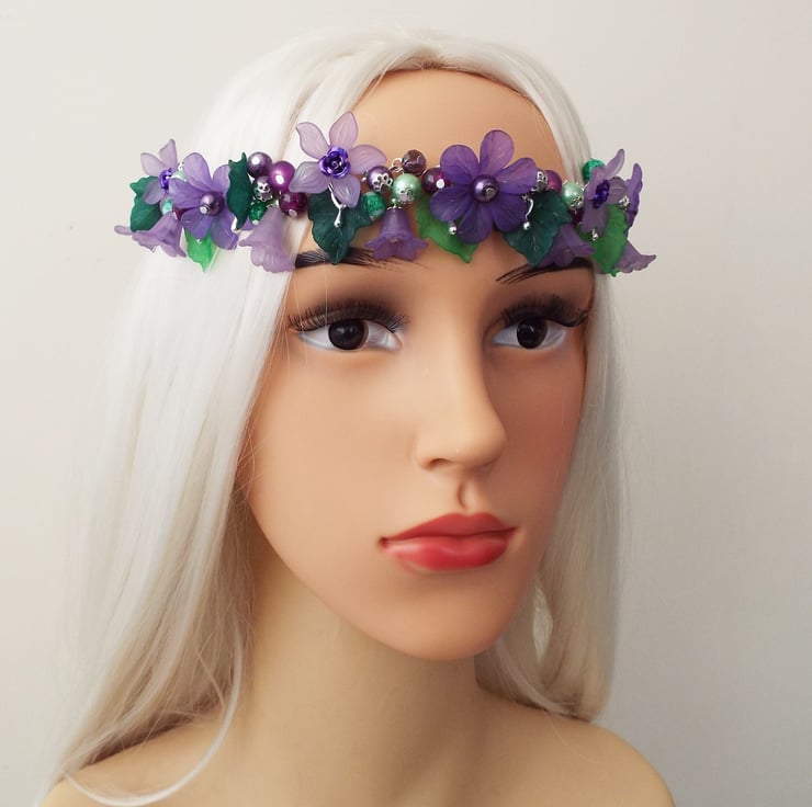 Purple Lucite Flower Circlet, Floral Headpiece, Wedding Crown, Garland Headdress