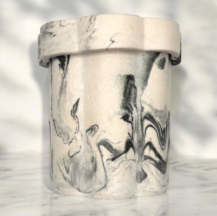 White Marbled Tall Plant Pot or Storage Pot With a Lid or Tray MFPP1