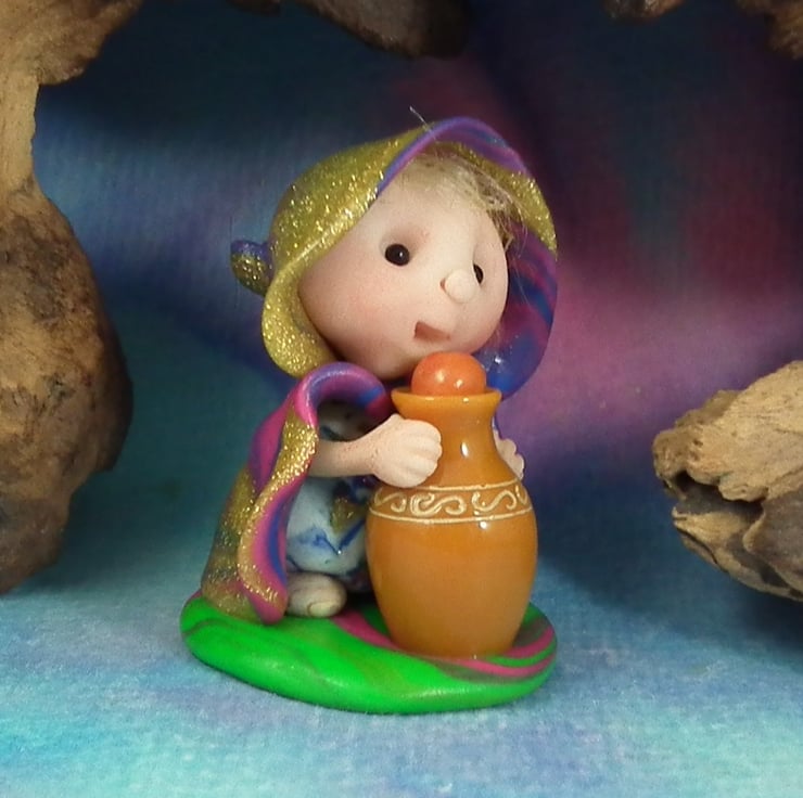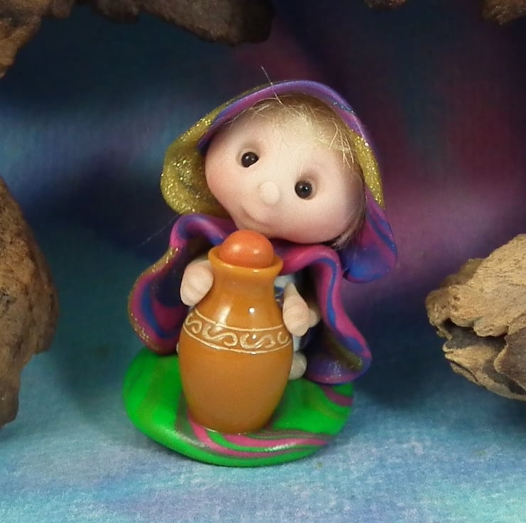This is a 'one of a kind' creation having been entirely handmade without the use of moulds here at my studio on the Sussex Coast. Modelled with artist blend polymers, blushed before sealing with lacquer, Sephie has sparkling black onyx eyes and variegated robes. Sephie the Infirmary Gnome is just one and a half inches tall.